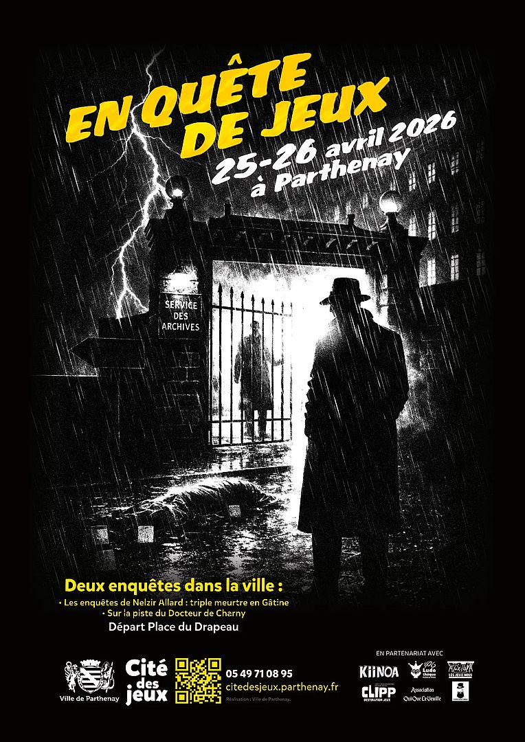 Les 25 et 26 avril prochain, en famille, en solo, avec vos amis, venez jouer à Parthenay et glissez-vous dans le costume d’enquêteur !