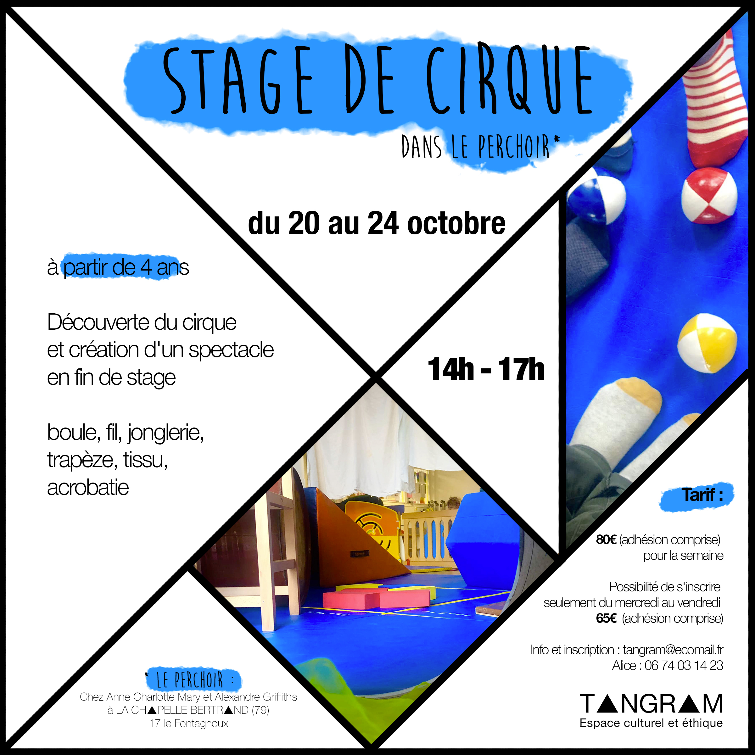 Initiation cirque et création d'un spectacle de fin de stage. Découverte de la boule, du fil, du trapèze, du tissu aerien, de la jonglerie et de l'acrobatie.