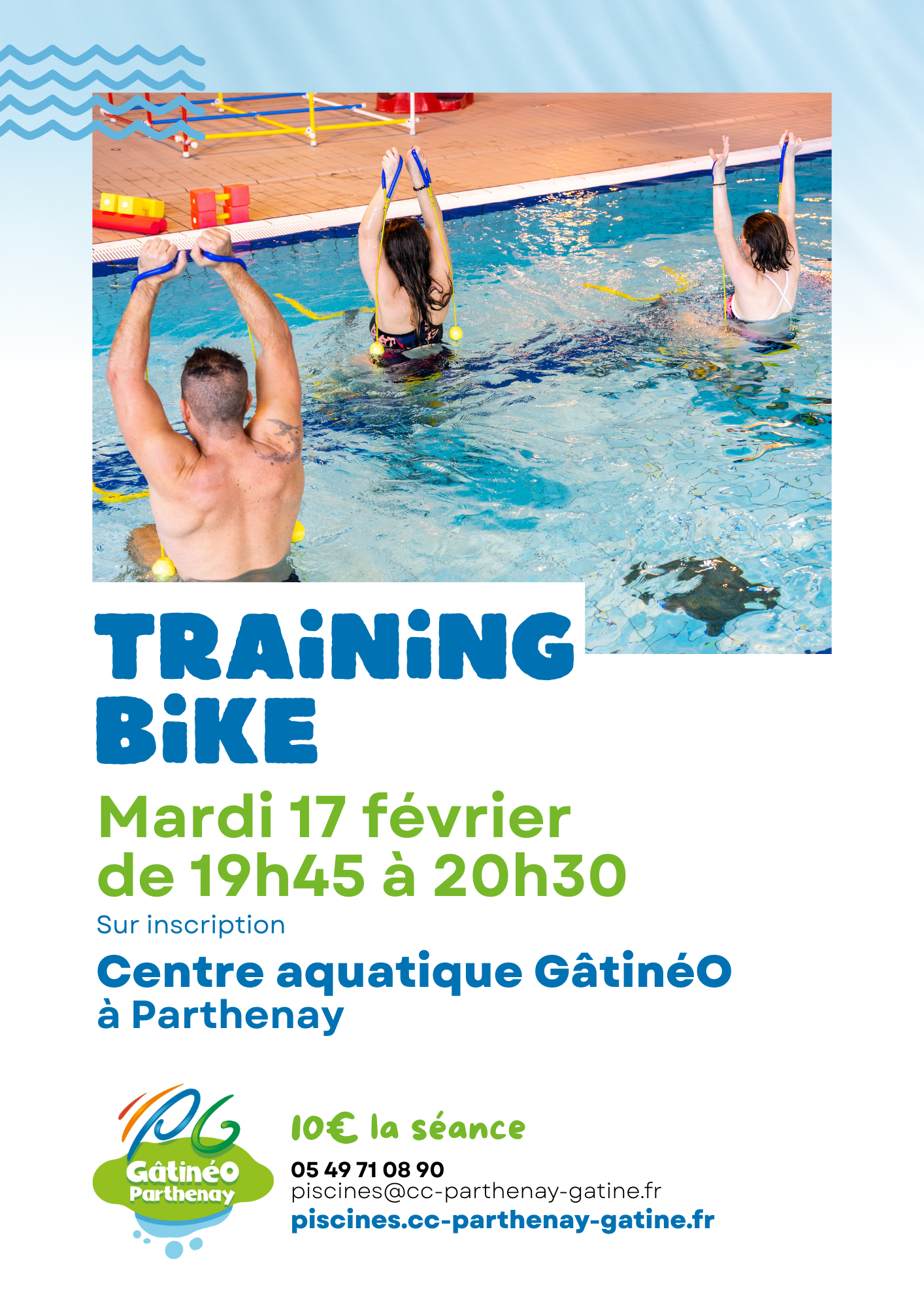 Un cours combinant plusieurs ateliers de renforcement musculaire et des séquences à vélo pour un entraînement.