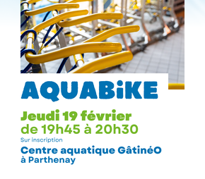 Le19févr.Du 19:45 à 20:30 Centre aquatique GâtinéO Boulevard Georges Clemenceau 79200 ParthenayAjouter à mon calendrierSportAquabikeCours de vélo dans l'eau intensif en musique !10 € la séance, sur inscriptionSélection de la vue© OpenStreetMap contributorsFermerPrécédentRetour à la listeSuivant