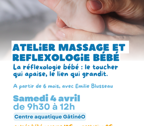 10€ entrée bébé nageur + 8€ séance réflexologie (sur réservation uniquement au 06 45 97 01 59)