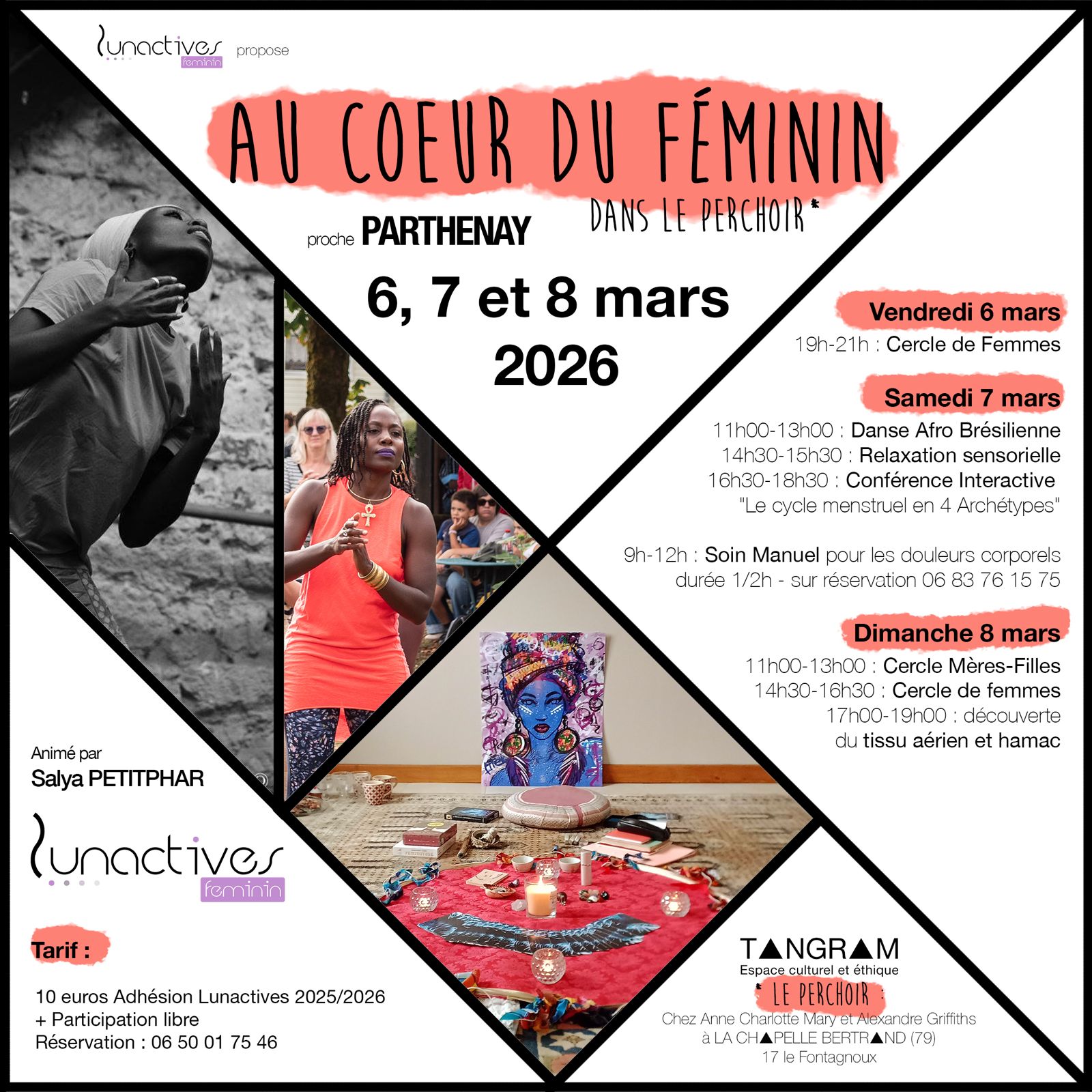 Tarif : 10 euros Adhésion Lunactives 2025/2026 + Participation libre