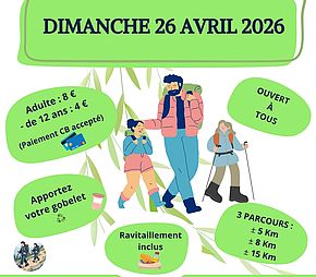 - Trois parcours balisés proposés : 5 km, 8 Km ou 15 km.