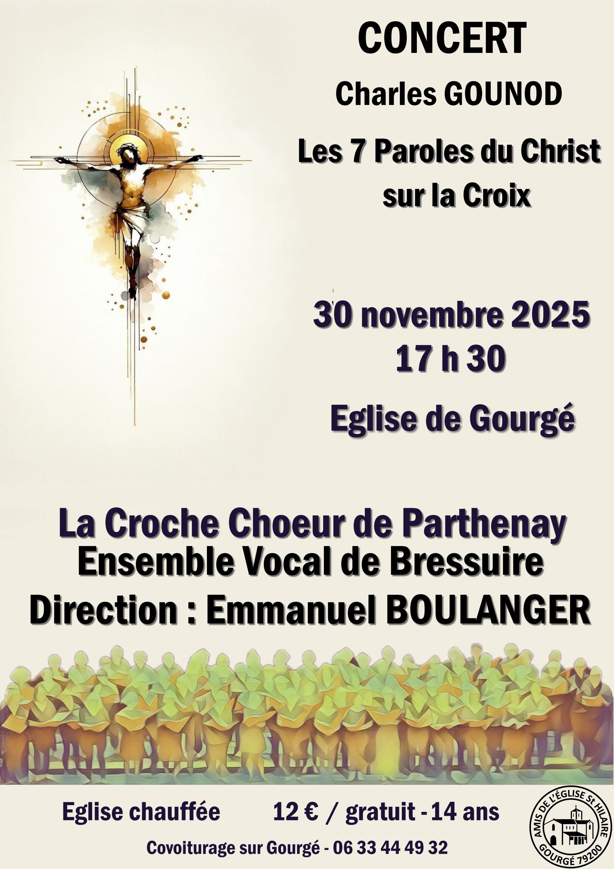 Les choristes de la Croche Choeur de Parthenay et de l'Ensemble vocal de Bressuire interpréteront l'oeuvre de Charles Gounod "les sept paroles du Christ sur la croix". Une rencontre entre les paroles de l'homme à l'agonie et l'oeuvre musicale.
