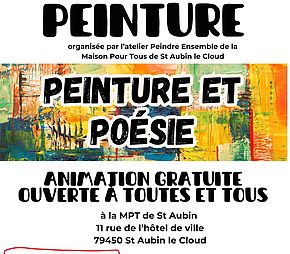 En mars, Carte blanche à la peinture mais pas que ... car on va mêler pinceaux et poésie au cours d'un défi peinture. On oublie les téléphones et on se lance à partir de quelques vers (faciles) tirés au sort ... Alors on vous donne rendez-vous le 7 mars à partir de 13h30 à la MPT pour une après-midi de convivialité.