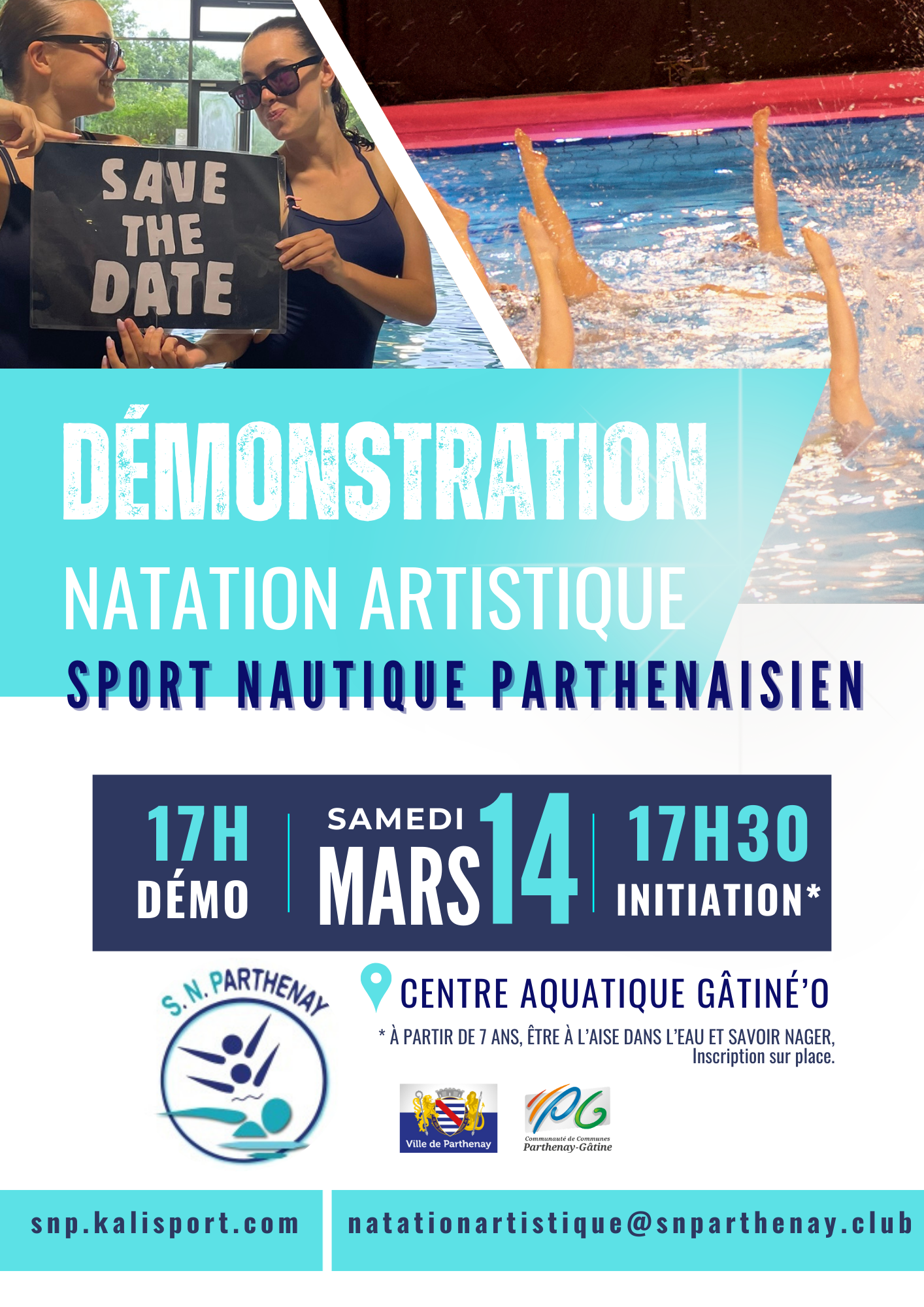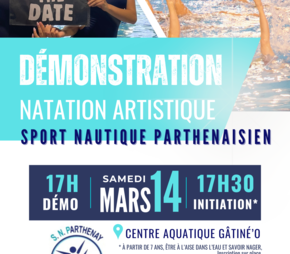Le14marsDu 17:00 à 18:00 Centre aquatique GâtinéO Boulevard Georges Clemenceau 79200 ParthenayAjouter à mon calendrierSportDémonstration et initiation de natation artistiqueLe Sport Nautique Parthenaisien vous propose :Une démonstration de natation artistique à 17h,Une initiation à la natation artistique à 17h30 à partir de 7 ans.Sélection de la vue© OpenStreetMap contributorsFermerPrécédentRetour à la listeSuivant