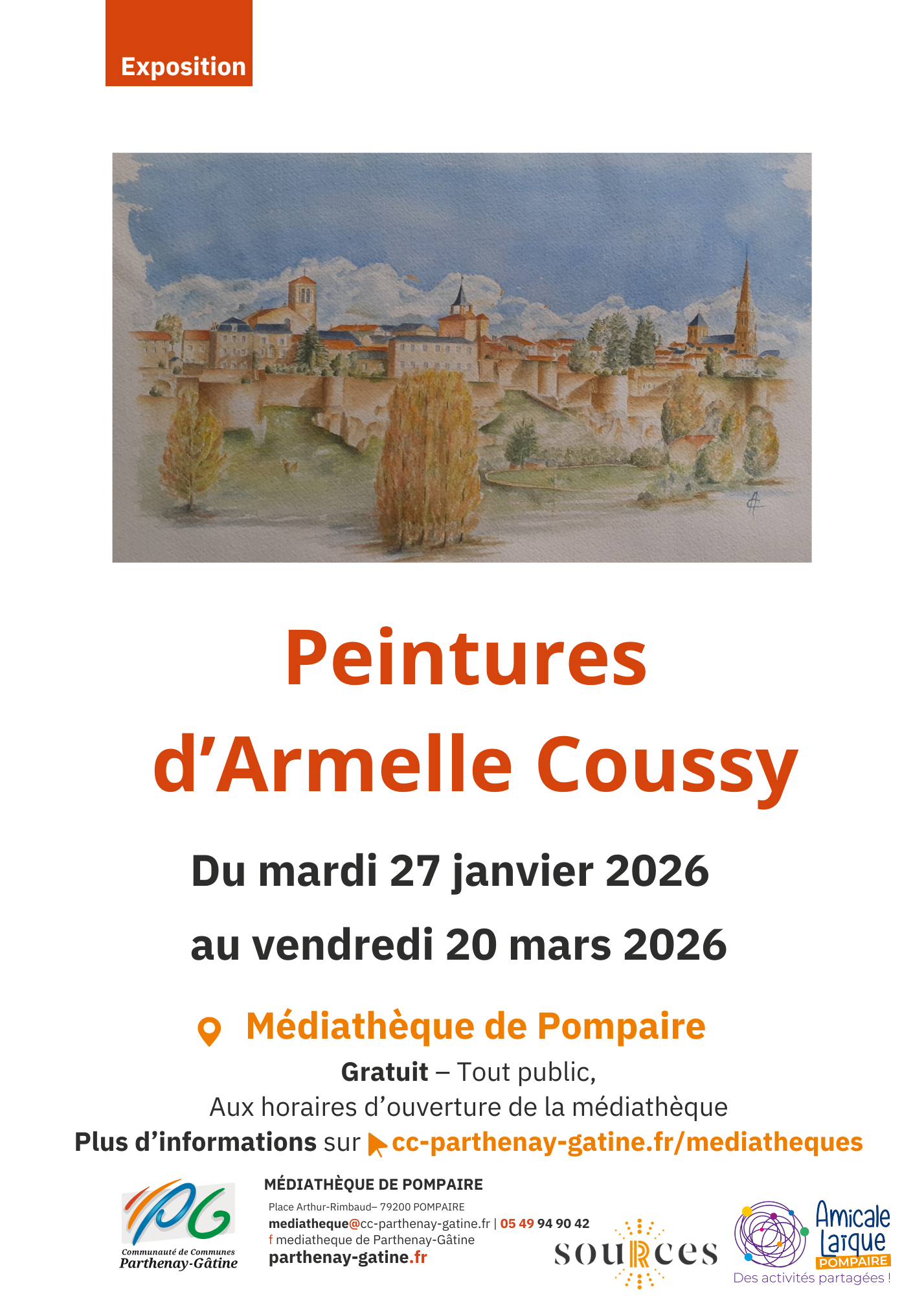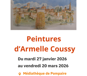 Venez découvrir les peintures de Mme Armelle Coussy de l'atelier Peindre ensemble de l'Amicale Laïque de Pompaire pendant les horaires d'ouverture de la médiathèque.