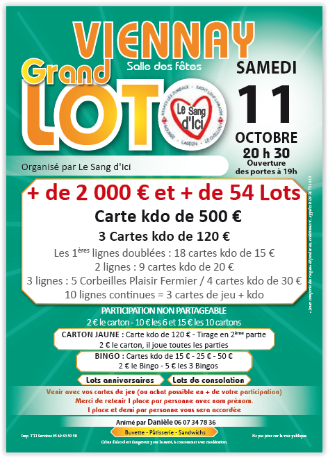 loto, plus de 2 000 euros de lots, contact 06 07 34 78 36