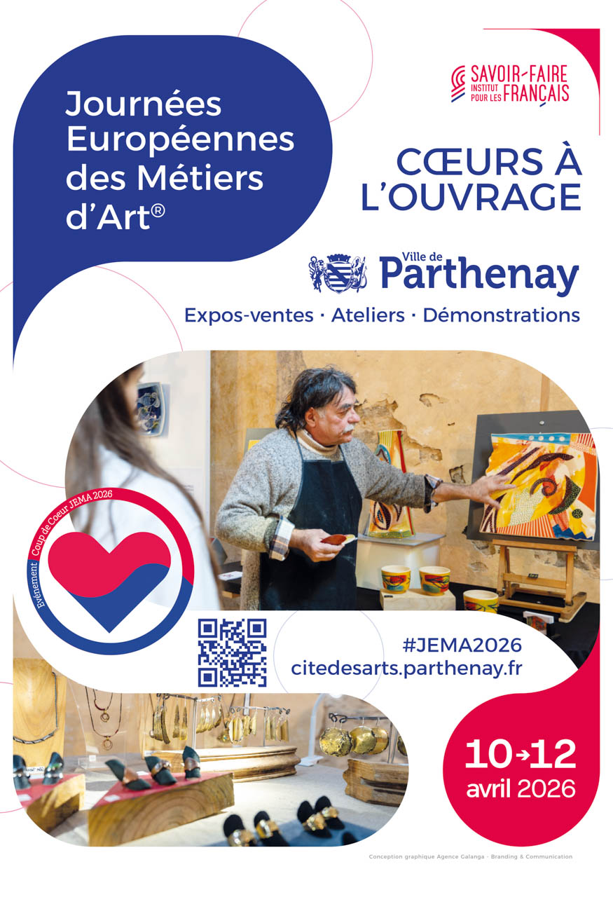 Parthenay, Cité des Arts vous invite aux Journées Européennes des Métiers d'Arts (JEMA). Des professionnels seront présents pour présenter leur travail et leurs créations tout le week-end :