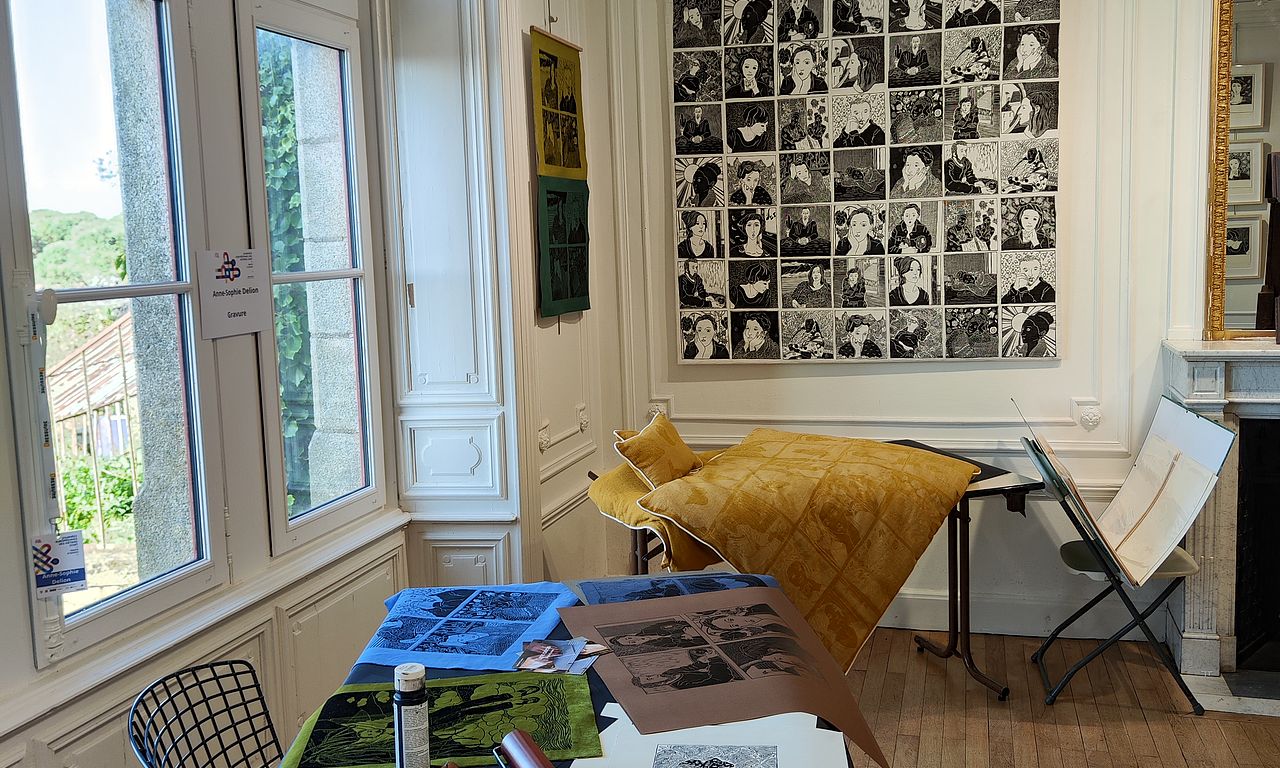 Dans la gravure, j'ai découvert une étendue illimitée qui me permet d'allier dessin, expérimentation, expression artistique, matière, outils et précision. Le multiple (impression en plusieurs exemplaires d'une image) me permet d'être en dehors de la pression de "l'oeuvre unique". J'aime cette répétition. Mon récit d'image, de portrait tourne autour du corps, de la rencontre. C'est le centre de mon travail. Chaque gravure, impression ou série vivent dans un espace nommé. Mon activité est composé de deux volets interdépendants : ma démarche artistique et l'animation d'ateliers d'arts plastiques.
