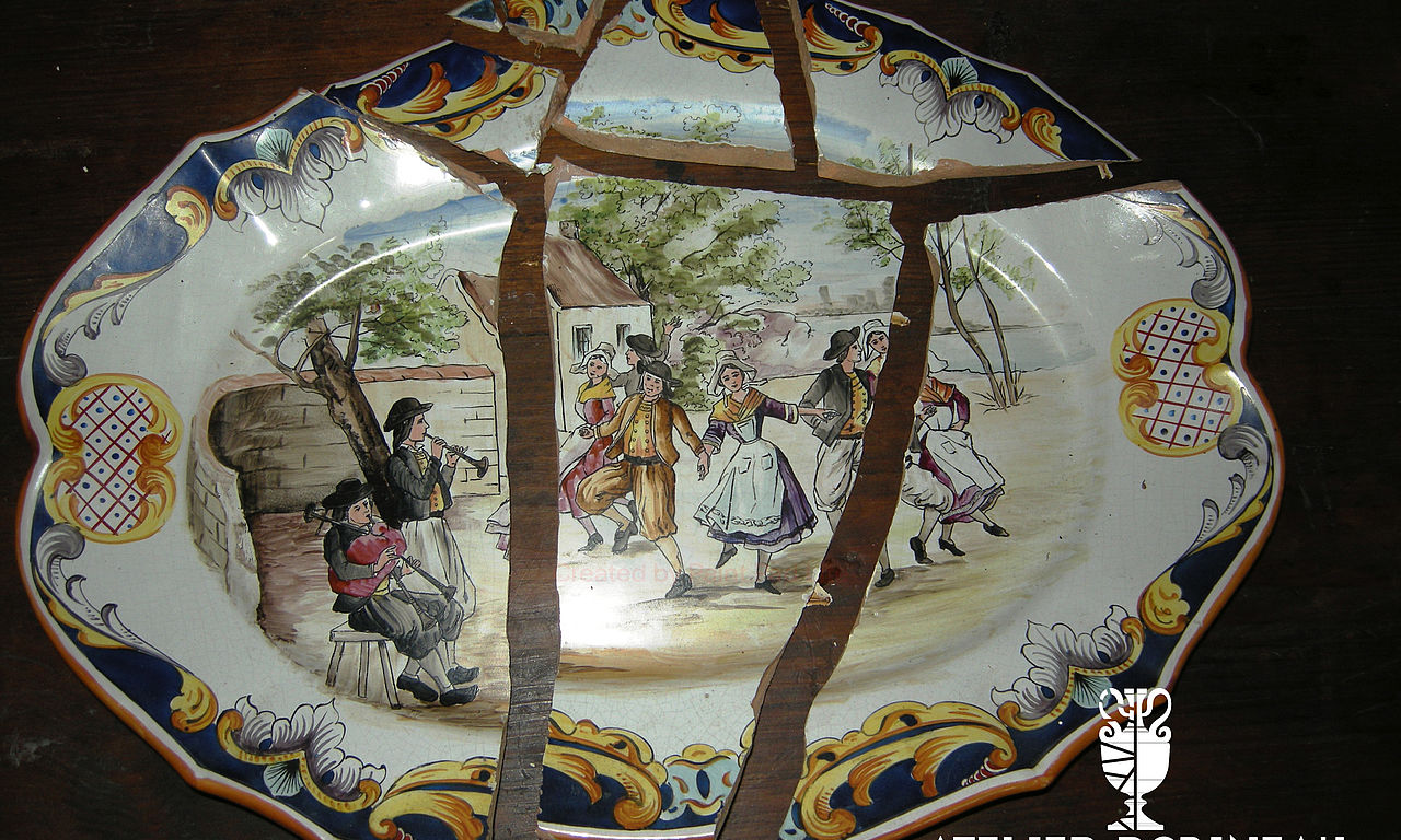Les restaurations effectuées sont des restaurations à froid, donc réversibles. La céramique n’est pas recuite, les produits de restauration sont à base polyester et polyuréthanne. Les objets ainsi restaurés doivent être purement décoratif et nettoyer seulement avec de l’eau claire, donc ne peuvent plus être passé au lave vaisselle ou servir pour leur usage premier.
