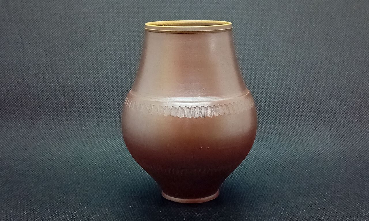 La plupart de mes pièces sont tournées à partir d’une argile calcaire. Après tournassage minutieux, j’applique plusieurs types de décorations : guillochis, barbotine, sablage. Certaines pièces sont estampées dans des moules en terre cuite avant d’être tournassées au niveau du col et du pied.