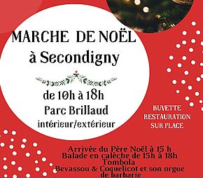 Marché de noël par Brillaud intérieur/extérieur : arrivée du Père Noël à 15 h, Balade en calèche de 15 à 18h, Bevassou & Coquelicot et son orgue de barbarie, buvette et rstaurant sur place, stands de créateurs et produits locaux.