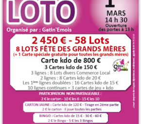 MEGA LOTO organisé par l'Association Gâtin'Emois, au profit de l'Association Gâtin'Emois