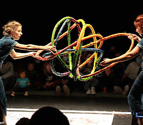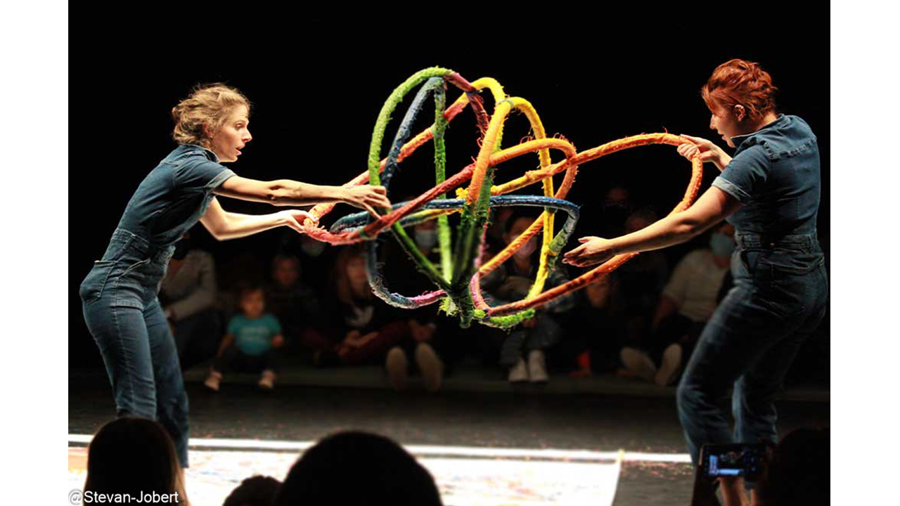 Deux personnages, un rouleau de papier, des pots de peinture, un pinceau géant. Petit à petit, le terrain de jeu se déploie. Les couleurs prennent corps : une trace, une empreinte, une rivière… La peinture coule, gicle, éclabousse. Les personnages, tour à tour surpris, émus, déroutés ou espiègles, se laissent emporter dans un tourbillon sensoriel à la découverte des couleurs. Dans un élan jubilatoire explosif, leurs traces envahissent progressivement le plateau jusqu’aux pieds des jeunes spectateur.rices !