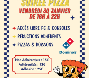 Le30janv.Du 18:00 à 22:00 Le 55, la guilde ludique 55 rue Jean-Jaurès (anciennement "Tipic") ParthenayAjouter à mon calendrierJeuSoirée pizza et jeux vidéosOrganisé par elevenesport.comSélection de la vue© OpenStreetMap contributorsFermerPrécédentRetour à la listeSuivant