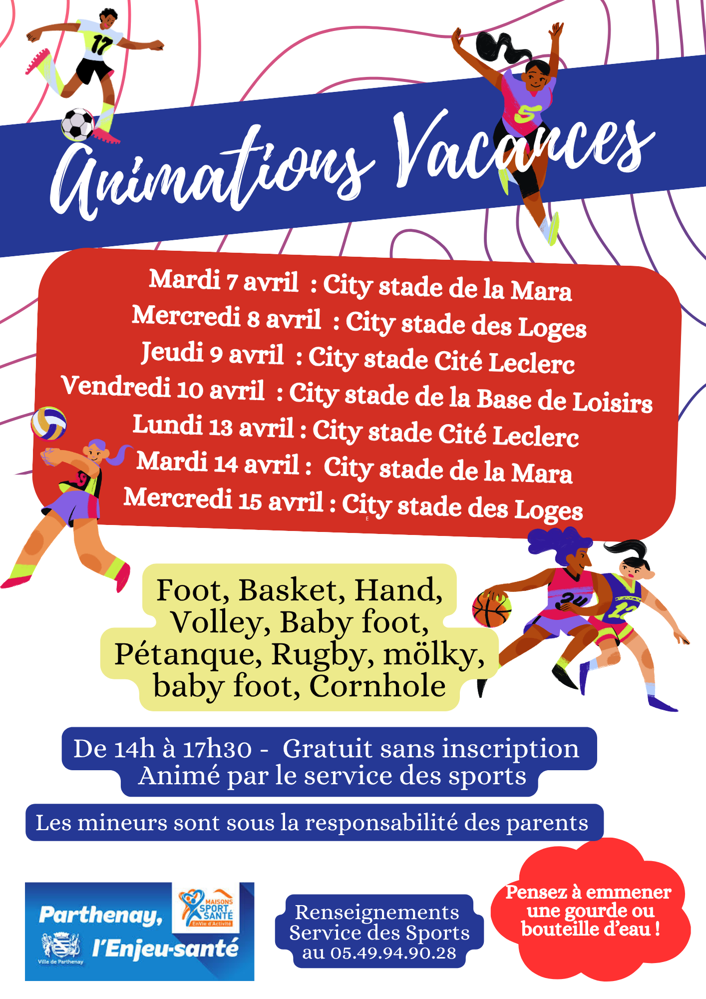 Animations sportives sur les différents city stades de la ville de Parthenay : La Mara, Les Loges, Base de loisirs et cité Leclerc.