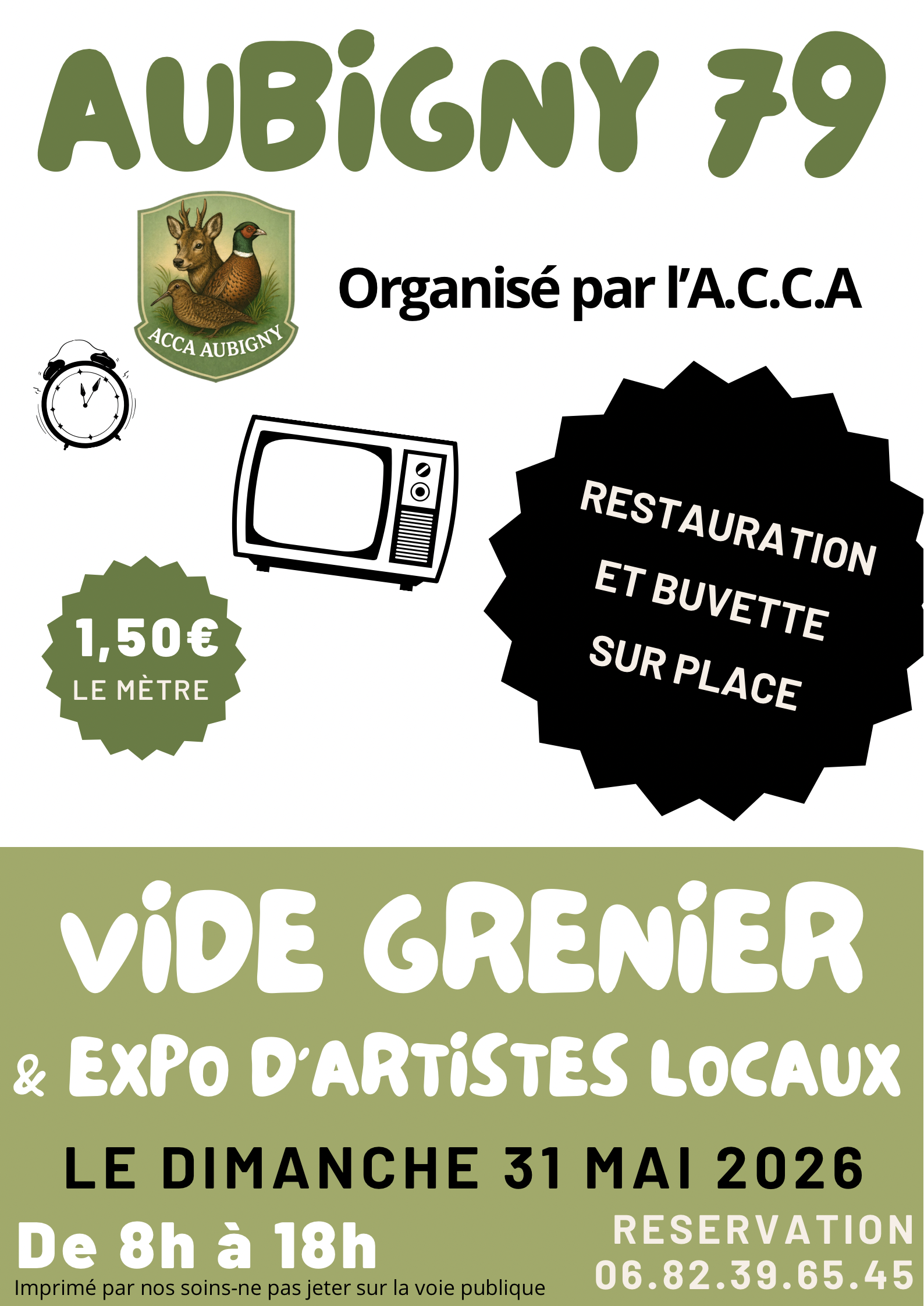 Vide-grenier et exposition d'artistes locaux organisé par l'ACCA d'Aubigny.