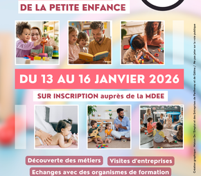 • Vendredi 16 Janvier 2026 (de 9h00 à 17h00) : Zoom des métiers de la Petite enfance au domaine des loges à Parthenay (ouvert au public - sur Inscriptions)
