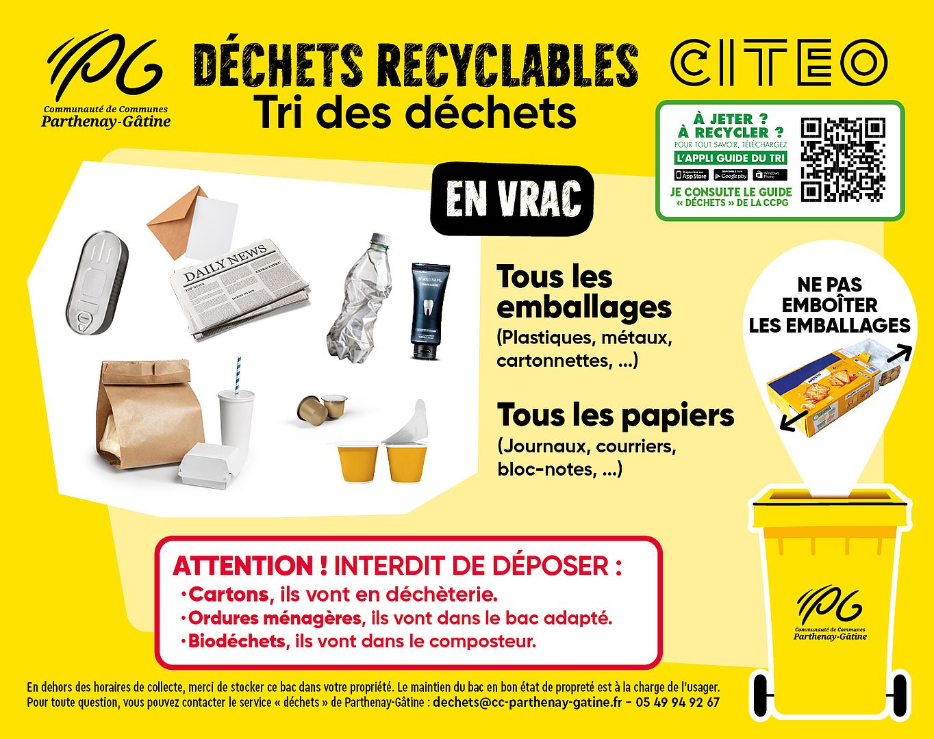 Consultez la carte, le tableau ci-dessous ou téléchargez l’application Citéo, guide du tri.