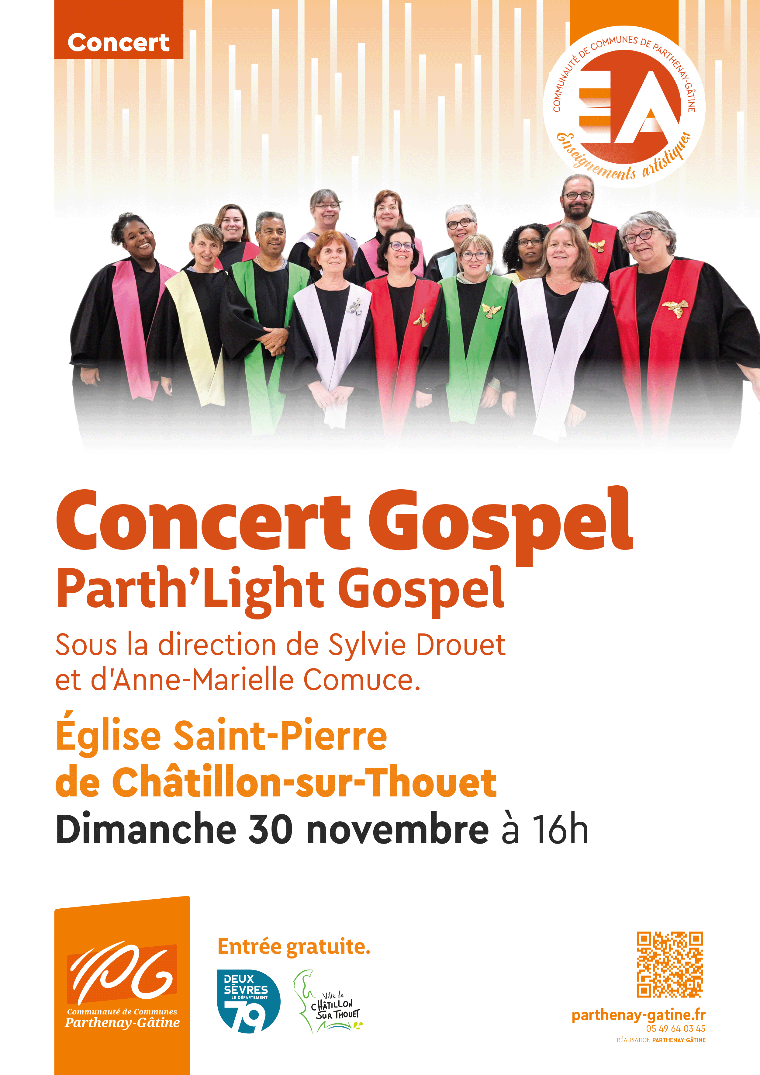 Représentation de l’ensemble du Parth'light Gospel, dirigé par 2 cheffes de chœur : Sylvie Drouet et Anne-Marielle Comuce.