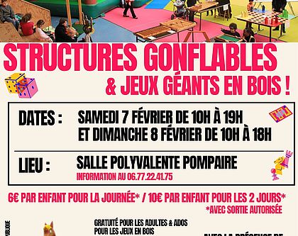 Du07févr.à08févr.JeuWeek-end structures gonflablesDu 10:00 à 18:00 Salle Polyvalente Pompaire 6 Rue de la Roulière 79200 Pompaire